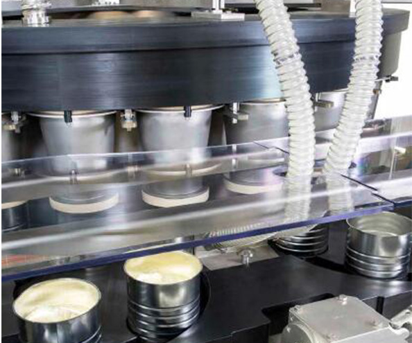在鐵罐經(jīng)過灌裝星輪的整個期間,施加在鐵罐底部的垂直振動確保鐵罐內(nèi)的產(chǎn)品更加密實。