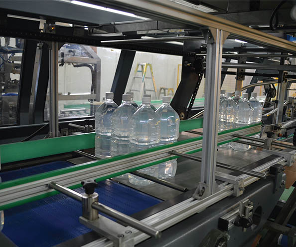 本機(jī)采用先進(jìn)的低沖擊進(jìn)瓶分隔系統(tǒng),使得輸送網(wǎng)帶對(duì)分瓶系統(tǒng)的推力降至最低,防止了擠壓爆瓶的發(fā)生。