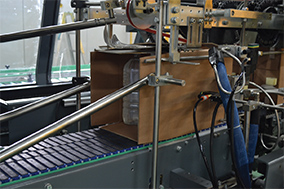 在推瓶機(jī)構(gòu)上專門設(shè)置了自動(dòng)離合、光電停機(jī)裝置,防止瓶向前輸送當(dāng)中出現(xiàn)的倒瓶、擠瓶導(dǎo)致變形現(xiàn)象。